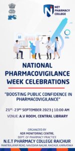 National Pharmacovigilance week celebration – 21st to 23rd Sep 2023